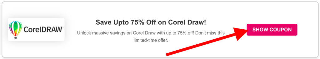 πŸ‘‰ On the coupon widget, click the “SHOW COUPON” button to reveal your unique CorelDRAW coupon code.