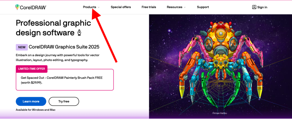 • Visit the Official Corel Draw Website and choose your product