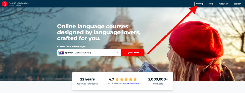 - You’ll be redirected to the official Rocket Languages website and Go To Pricing Plan Section.
