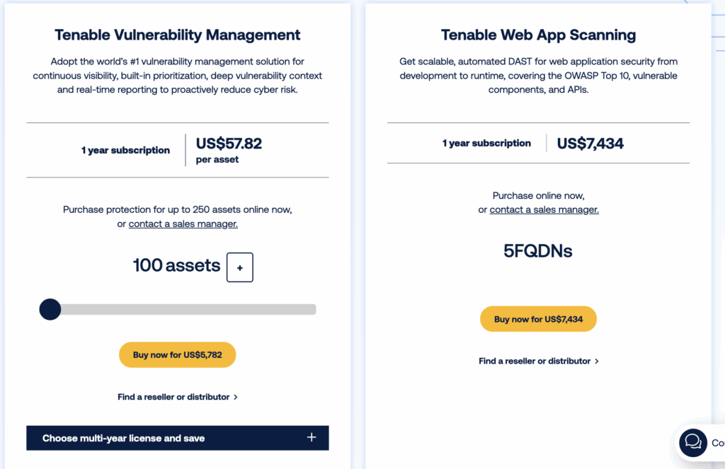 Click on any “Show Coupon” or “Activate Deal” button above to be redirected to Tenable’s official site. - Choose Your Product